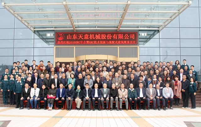 為加快GRC技術(shù)創(chuàng)新,積極適應經(jīng)濟新常態(tài),2016年11月5日,2016 GRC年會暨裝配式建筑發(fā)展研討會在山東圣德酒店盛大召開,本次會議由GRC協(xié)會及專業(yè)委員會主辦,山東天意機械股份有限公司協(xié)辦。