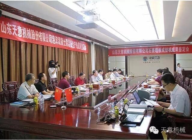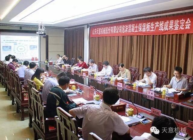 為加快產(chǎn)業(yè)結(jié)構(gòu)轉(zhuǎn)型升級(jí),突出科技創(chuàng)新驅(qū)動(dòng)企業(yè)發(fā)展,7月23日,由山東省機(jī)械工業(yè)協(xié)會(huì)處長(zhǎng)李玉奎帶隊(duì)一行領(lǐng)導(dǎo)專(zhuān)家,蒞臨天意機(jī)械組織召開(kāi) "泡沫混凝土保溫板生產(chǎn)線” 和 “石膏墻板成型機(jī)” 科技成果鑒定會(huì)。濟(jì)寧市兗州區(qū)副區(qū)長(zhǎng)周詠輝,集團(tuán)董事長(zhǎng)劉洪彬、技術(shù)總監(jiān)陳維國(guó)等領(lǐng)導(dǎo)出席了本次會(huì)議。