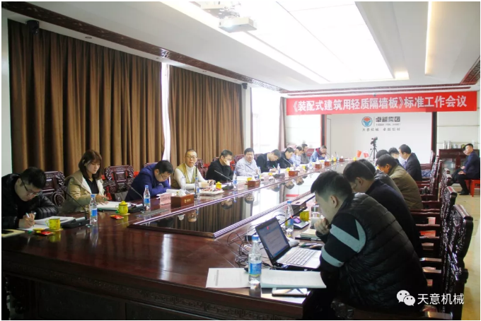 2018年11月17日,CBMF《裝配式建筑用輕質(zhì)隔墻板》標(biāo)準(zhǔn)工作會(huì)議在天意機(jī)械三樓多功能會(huì)議中心隆重召開。出席本次會(huì)議主要領(lǐng)導(dǎo)有建筑材料工業(yè)技術(shù)監(jiān)督研究中心主任王桓、天意機(jī)械董事長(zhǎng)暨中國(guó)循環(huán)經(jīng)濟(jì)墻材革新工作委員會(huì)會(huì)長(zhǎng)劉洪彬以及行業(yè)內(nèi)專家、學(xué)者等20余人。